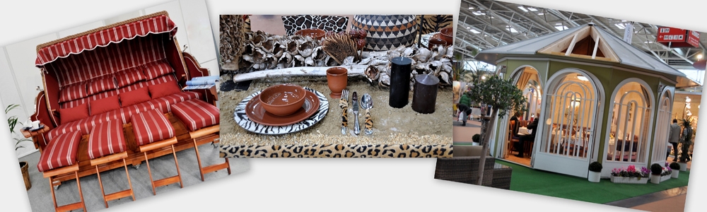 Gartenliegen, Tische und Stühle im ausgesuchten Design zeigte die Firma Wellness-Konzept aus Bremen. Sie brachten ihre Luxus-Standkörbe mit nach Bayern, auch in den Bergen findet man diese Wellnessliegen in den großzügigen Gärten immer öfter.