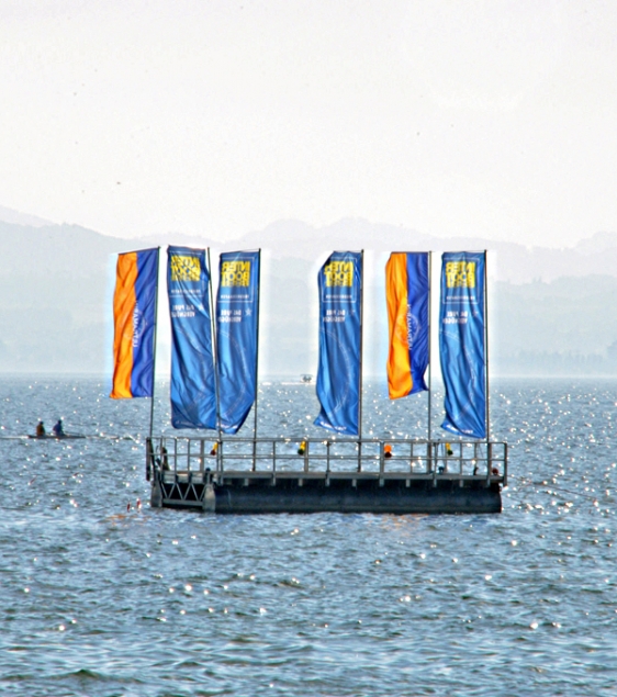 rund um den Wassersport. Auf den Ausstellungsflächen, dem Messesee und Freigelände zeigen Internationale Hersteller ihre Produktpallette. Der eigenständige INTERBOOT-Hafen am Seeufer in Friedrichshafen bot die Möglichkeit, Wassersport live zu erleben. Hier konnten die Besucher sich zu Testfahrten mit verschiedenen Booten auf`s Wasser begeben, den ganzen Tag legten die Bote rasante Runden hin und so mancher Besucher wurde "scharf" in die Kurven gelegt