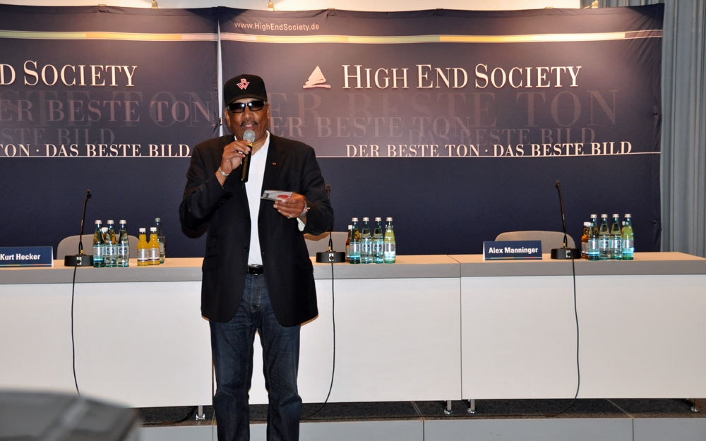 Ron Williams (Schauspieler, Sänger, Komponist, Autor und Entertainer Bild links) begrüßte die Presse und sprach über die Entwicklung der Musik und der High End aus seiner Sicht. Er war der erste afro- amerikanische Nachrichtensprecher des Armeesenders AFN. Neben seiner Arbeit bei AFN schrieb er auch für mehrere Tageszeitungen.