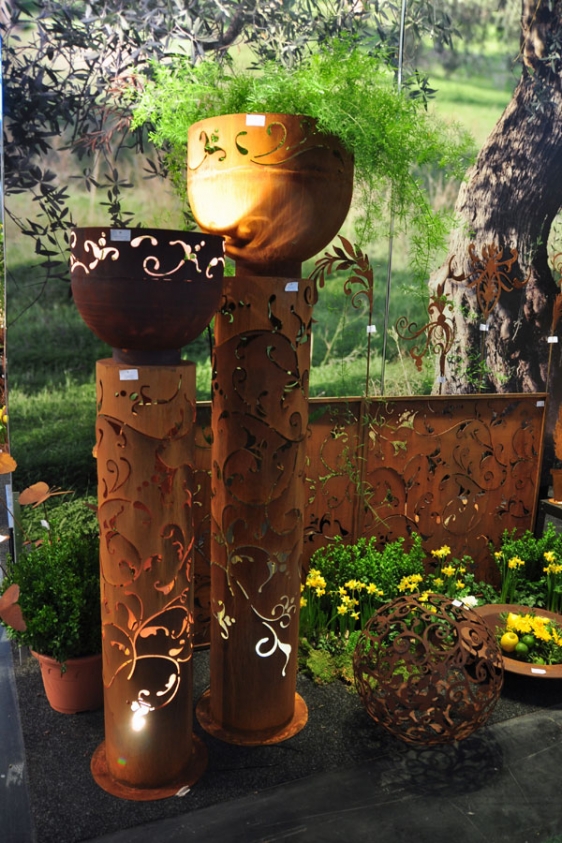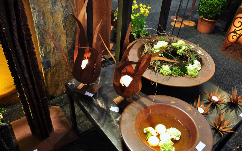 Der Trend für die Gartenfreunde: alles darf aus rostigen Einsen sein. Leuchter, Zäune, Feuerschalen, Abtrenngitter, Bänke und Stühle. Die Auswahl der Produkte war mehr als vielfältig.