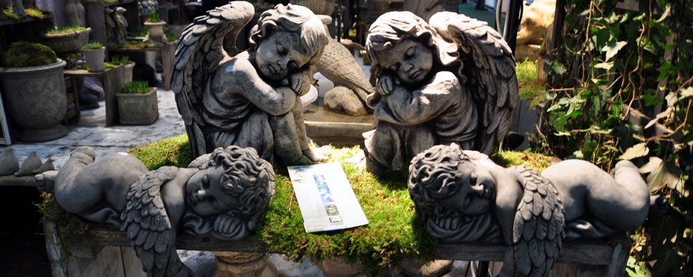 Engel und Buddha- skulpturen