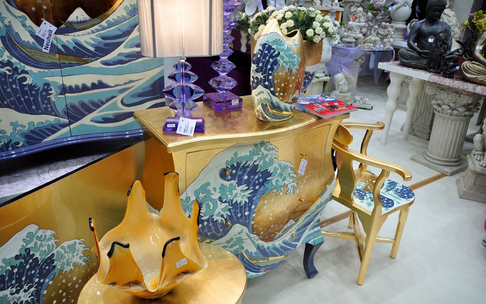 Die Möbel zeigten auch für den kommenden Sommer einen großen Trend zu der Farbe Altweiß und diese waren auf alt getrimmt. Es war wie ein Spaziergang durch Großmutters Zeiten und wir hatten das Gefühl, das Moderne hat seine Dominanz verloren.