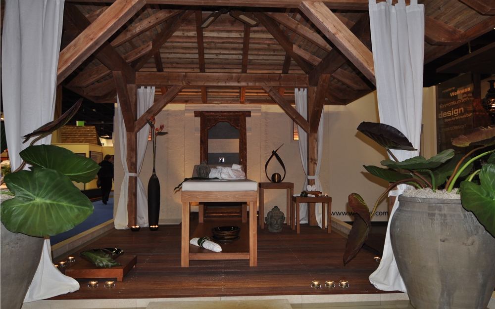 Die Firma „Wellverde“ zeige sich als Augenweide und ist immer einen Besuch wert. Der Stand präsentierte sich voller exklusiver Einrichtungsideen aus dem Spa- und Wellnessbereich. Bild links