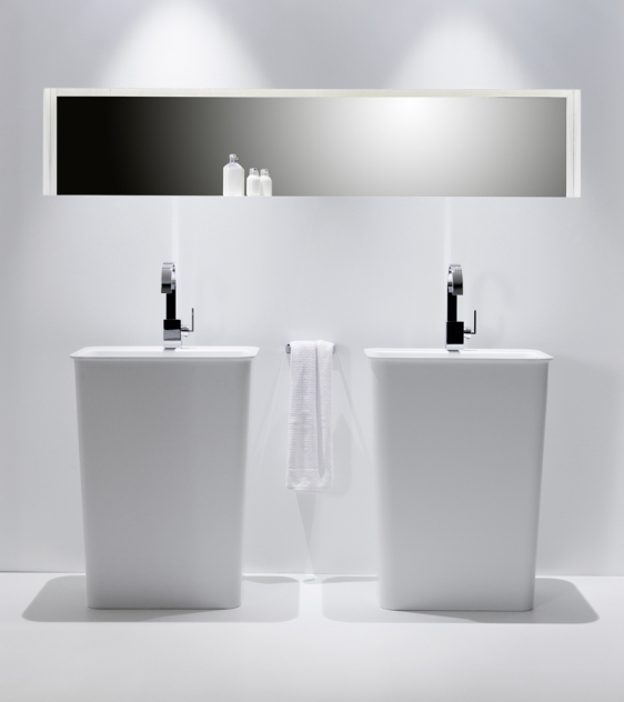 Die dazu passenden Waschtischmodelle Unique No. 1 und No. 2 gibt es in drei Varianten. Als Besonderheit bietet die Serie No. 1 eine freistehende Säule. Ein Aufsatzwaschbecken und eine Säule halbhoch gehören ebenfalls zur Serie. Die Armatur sitzt bei diesen Ausführungen auf dem Beckenrand auf.