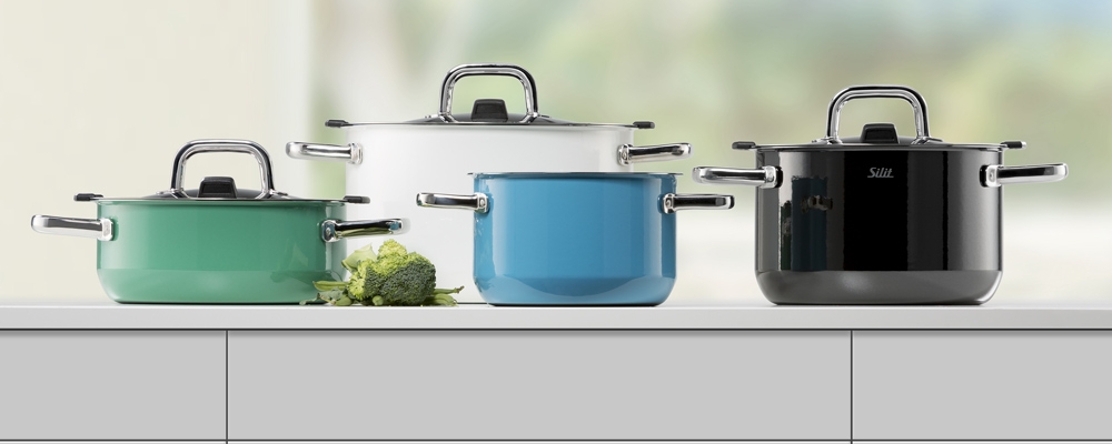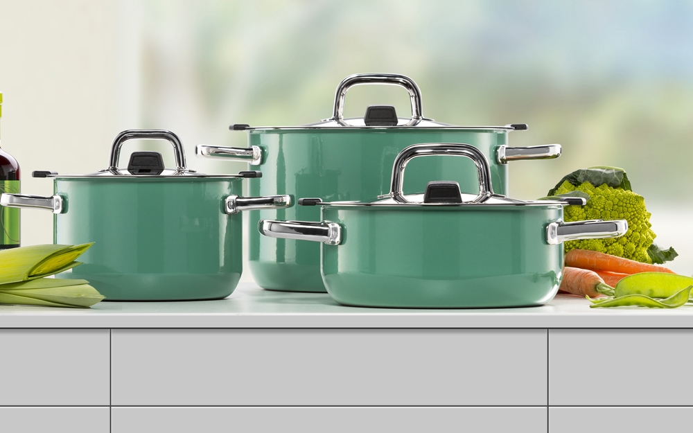 Die Nature Colours sind als Bratentöpfe, Fleischtöpfe und Stielkasserolle einzeln oder im Set erhältlich. Schmorpfannen, ovaler Bräter und Sicomatic Schnellkoch-töpfe ergänzen das Sortiment oder fungieren als cooles Highlight im neuen Lieblingston.