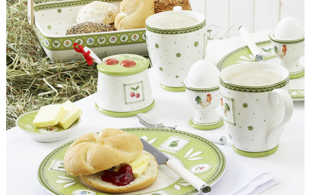 Das neue Villeroy & Boch Farmers Spring ist ein Porzellan mit Ostermotiven in Grün-Weiß. Lustige Motive mit Hasen und Hühnern schmücken das Villeroy & Boch Osterporzellan Farmers Spring. Eierteller, Brunchschale, Eierbecher, Dekodosen, Butterdose, Tassen, Teller oder Milchkaraffe sind Bestandteil der neuen Villeroy & Boch Serie 2011.