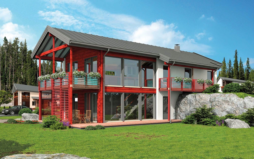 In Honka Fusion™ Häusern können einige Fassadenwände aus Stein und andere aus massivem Holz sein. Ihre Familie wird dabei künftig von den besten Qualitäten eines Blockhauses, wie gesunder Innenluft und einem auf die Wünsche, der Familie angepasstes Design profitieren.