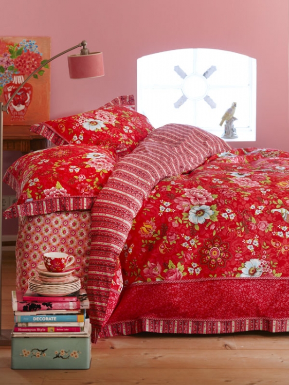 Wundervolles Blumenbouquets und hübsche Pfauen laden zum Träumen ein! Die wunderschöne Bettwäsche Flowers in the Mix Red von PIP Studio ist immer eine gute Wahl!