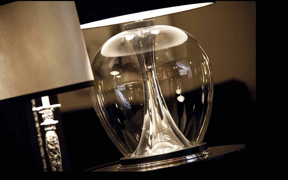 Die widersprechenden Formen des Glases und des Metalls, geben dieser Lampen ein charakteristisches und spielerische Beschaffenheit, wodurch sie eine ganz eigene Identität zeigt. Ein Meisterstück des Lampen Designs.