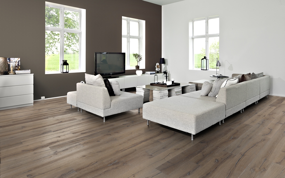 Eine einfache und zugleich geschmackvolle Wahl ist sogenanntes 2-Schicht- Parkett, wie zum Beispiel die neue Atelier Collection von Kährs. Ein großer Vorteil dieser Lösung: Durch ihre Konstruktion und die Art der Verlegung verformt sich der Boden nicht und bleibt dauerhaft schön.