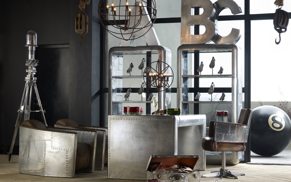 Es hat was von einer Sinnestäuschung, wenn man das erste Mal den Flagshipstore von Timothy Oulton in der neuen Wäscherei am Mexikoring betritt. Sinnestäuschung, weil der erste Eindruck suggeriert, hier tobt sich die klassische Postmoderne aus: tonnenschwere Ledersofas und Sessel, dazu riesige Kronleuchter. Der zweite Blick bleibt überrascht am Detail hängen. Metallapplikationen an den Möbeln, Kronleuchter, die zwischen gebogenen Metallstangen wie in einem Planetenmodell eingerahmt sind.