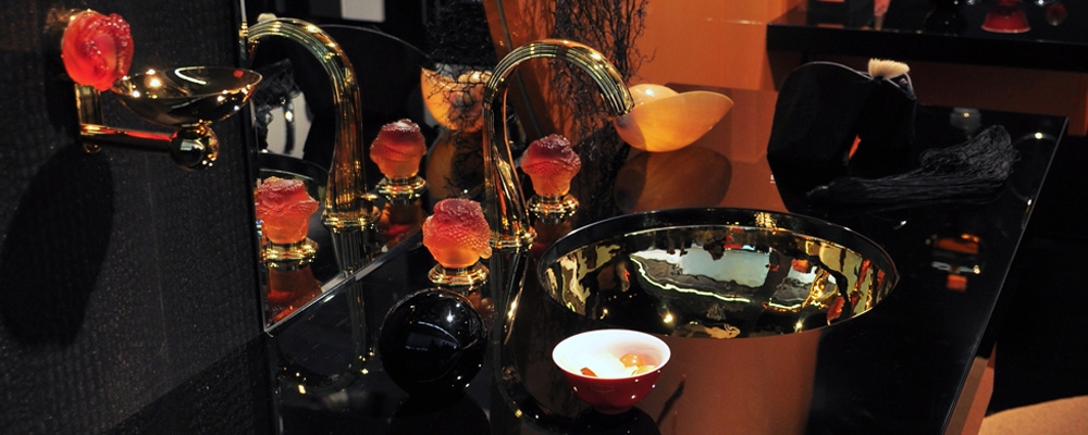 Das französische Unternehmen THG Paris stellt exklusive Armaturen und Badezimmer-Accessoires her, wie z.B. Waschbecken aus edlem Metall.